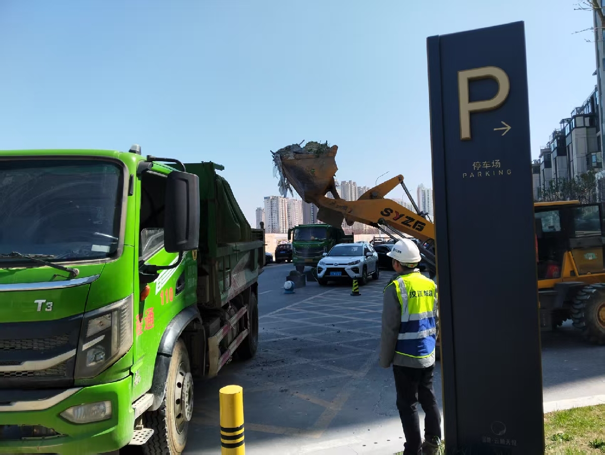 3月20日,襄阳市程通机械化工程有限公司在金地悦莑项目,投入中型全封闭式智能环保运输车辆,开展地库装修垃圾清运工作。