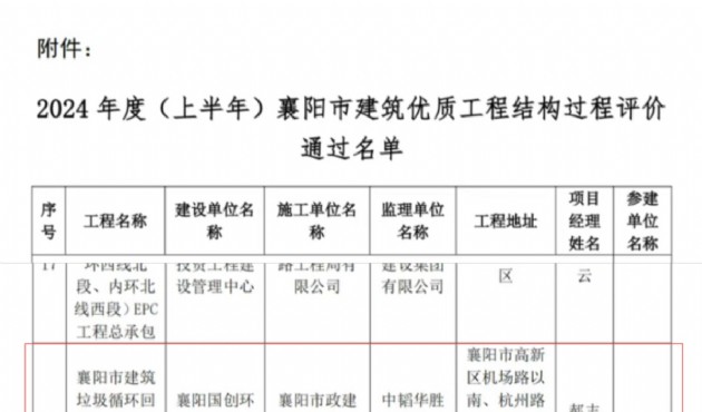 近日,襄阳市建筑业协会发布《关于表彰2024年度(上半年)襄阳市建筑优质工程结构过程评价结果的通报》,襄阳市政建设工程有限公司
