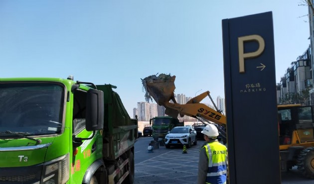 3月20日,襄阳市程通机械化工程有限公司在金地悦莑项目,投入中型全封闭式智能环保运输车辆,开展地库装修垃圾清运工作。公司投入